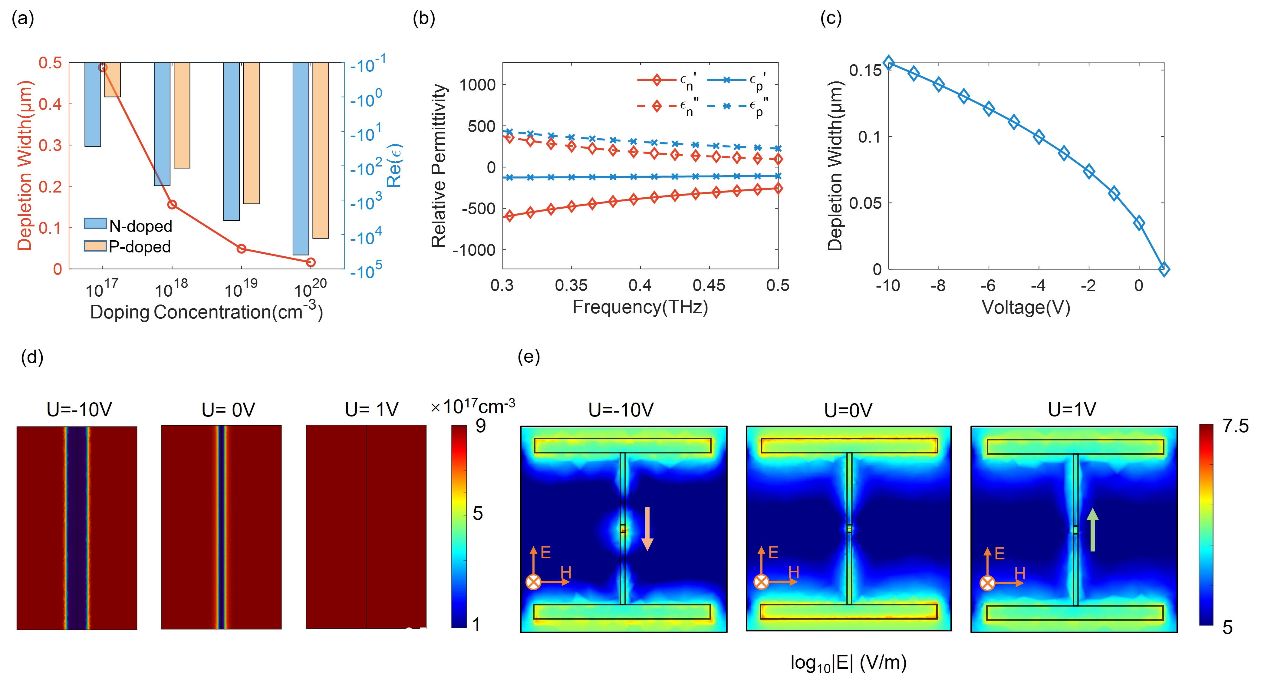 We proposed a design for a terahertz programmable metasurface based on the free carrier plasma dispersion effect. By integrating PN junctions into the “H”-shaped metallic metasurface unit structure. We utilized the change in the carrier concentration distribution of the PN junctions induced by the application of an external voltage. Simulations have demonstrated continuous phase modulation of 270° at a frequency of 0.4 THz and an average efficiency of 30%. The metasurface unit employs an “MIM” structure, with each unit being independently adjustable. Moreover, it leverages the high-speed switching characteristics of the PN junction, which is expected to achieve modulation speeds up to the GHz level. The team also demonstrated the far-field radiation pattern of the metasurface unit array, with a peak side-lobe ratio of 13 dB, indicating good beam steering performance.